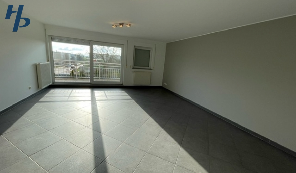 Spacieux séjour lumineux d’environ 32 m² avec accès à un balcon de ± 6 m² orienté Sud-Ouest